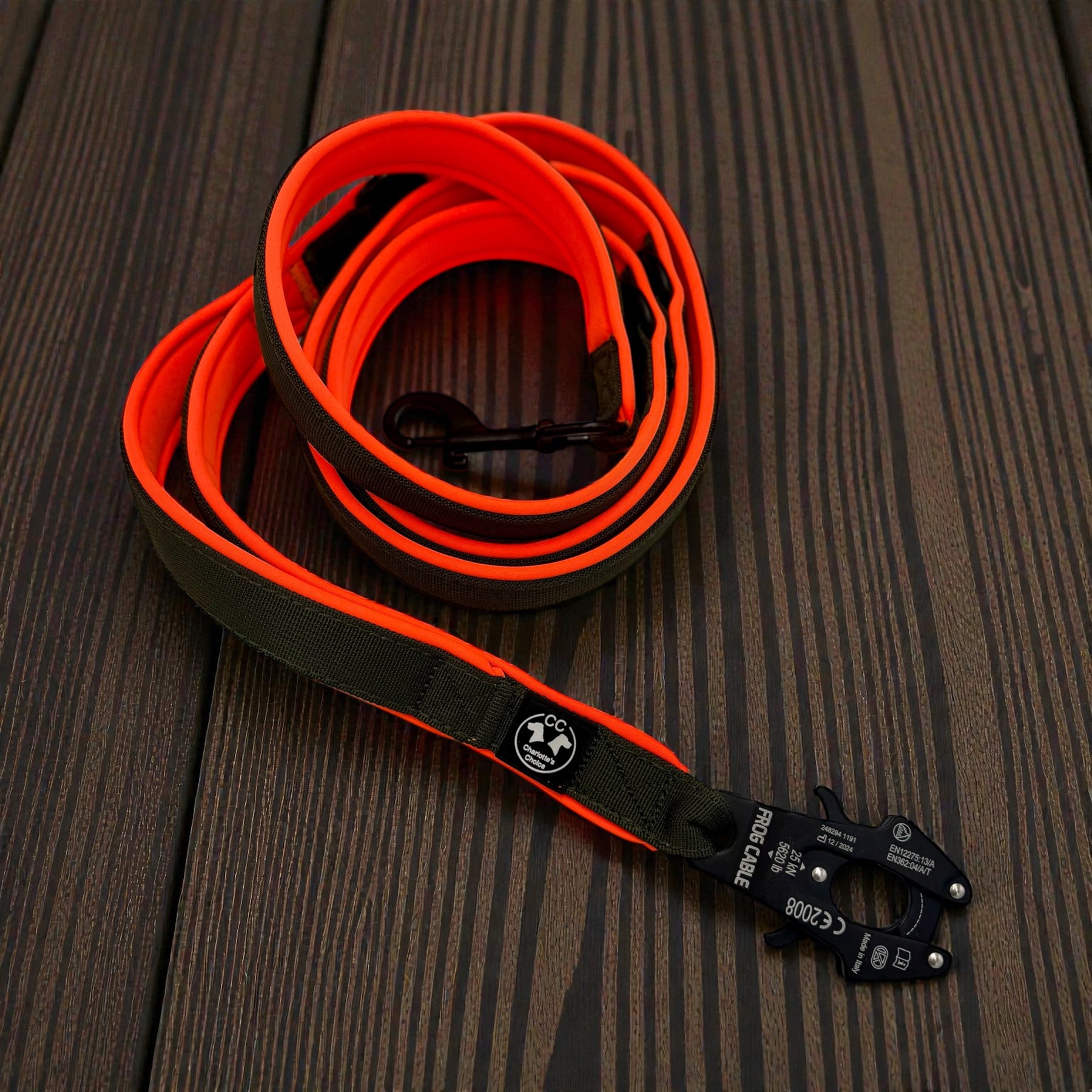 Dark army Leine 2.20 m 2.5 cm breit verstellbar Dark army & Polster neon orange & neon pink